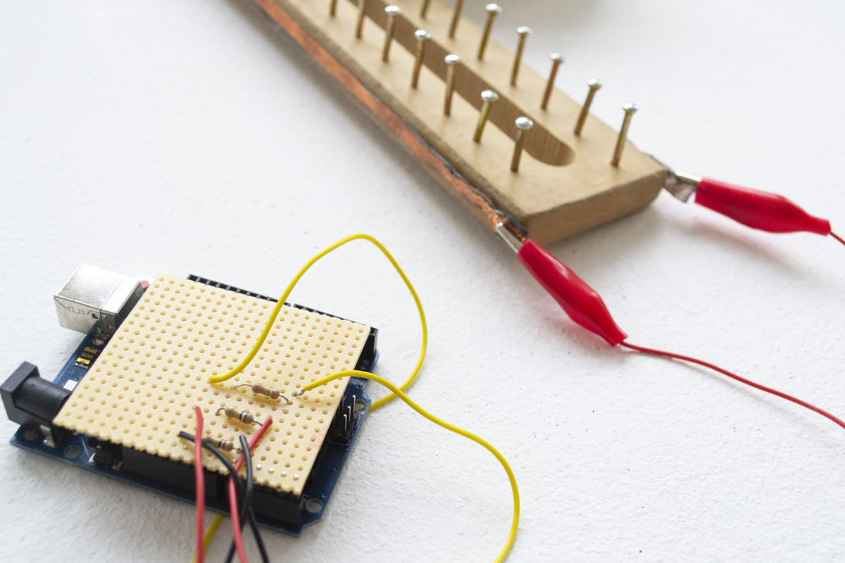 For this reason, with the help of Arduino, a circuit, PureData patches of synths/MIDI notes musical instruments, and conductive wire I transformed three different textile techniques (knitting needles, knitting board and crochet) into textile instruments/sensors to obtain a concert of noises.